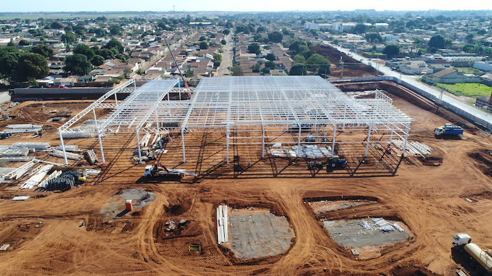 Desafio: O principal desafio desta obra foi implantar uma nova loja Assaí em Campo Grande‑MS em dois terrenos originalmente separados por uma via pública, o que exigiu um complexo processo de desafetação e a reconfiguração completa do sistema viário local, incluindo o asfaltamento de aproximadamente 2 km de vias para desvio de tráfego. Em paralelo, o terreno apresentava um volume muito elevado de terraplenagem, necessidade de arrimos altos, lençol freático elevado e solo com baixa capacidade de suporte, obrigando ao retrabalho de até 2 metros de profundidade, com escavação, tratamento e recomposição desse solo até atingir os parâmetros técnicos de desempenho. Essas condições geotécnicas desfavoráveis, somadas a um regime de chuvas intensas e praticamente diárias entre janeiro e julho e a uma drenagem urbana incipiente na região, transformaram a execução de terraplenagem, contenções, drenagem e TAC em um grande desafio de prazo, controle tecnológico e qualidade de acabamento.